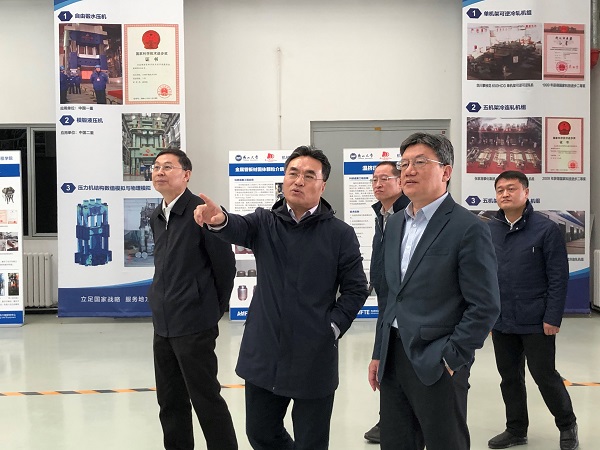 隨后王振林董事長(zhǎng)一行在燕大趙永生副校長(zhǎng)、原副校長(zhǎng)孔祥東等的陪同下,參觀了燕大特種運(yùn)載裝備研究中心、亞穩(wěn)材料制備技術(shù)與科學(xué)國(guó)家重點(diǎn)實(shí)驗(yàn)室、國(guó)家冷軋帶裝備及工藝工程技術(shù)研究中心、先進(jìn)制造成形技術(shù)及裝備國(guó)家地方聯(lián)合工程研究中心等。