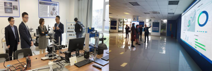 首先,潘總帶領(lǐng)王處等人參觀了基地的人才培養(yǎng)培訓(xùn)中心、智能設(shè)計(jì)與仿真應(yīng)用研究室、機(jī)器視覺研究室、智能制造診斷平臺。