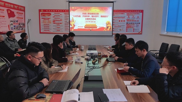 為深入學習貫徹黨的十九屆六中全會精神,自覺踐行初心使命,按照公司黨委部署要求,12月13日下午,機器人事業(yè)部黨支部聯(lián)合團支部開展“以史為鑒、開創(chuàng)未來,埋頭苦干、勇毅前行”主題黨日,共計17人參加,會議由黨支部書記趙宏劍主持。