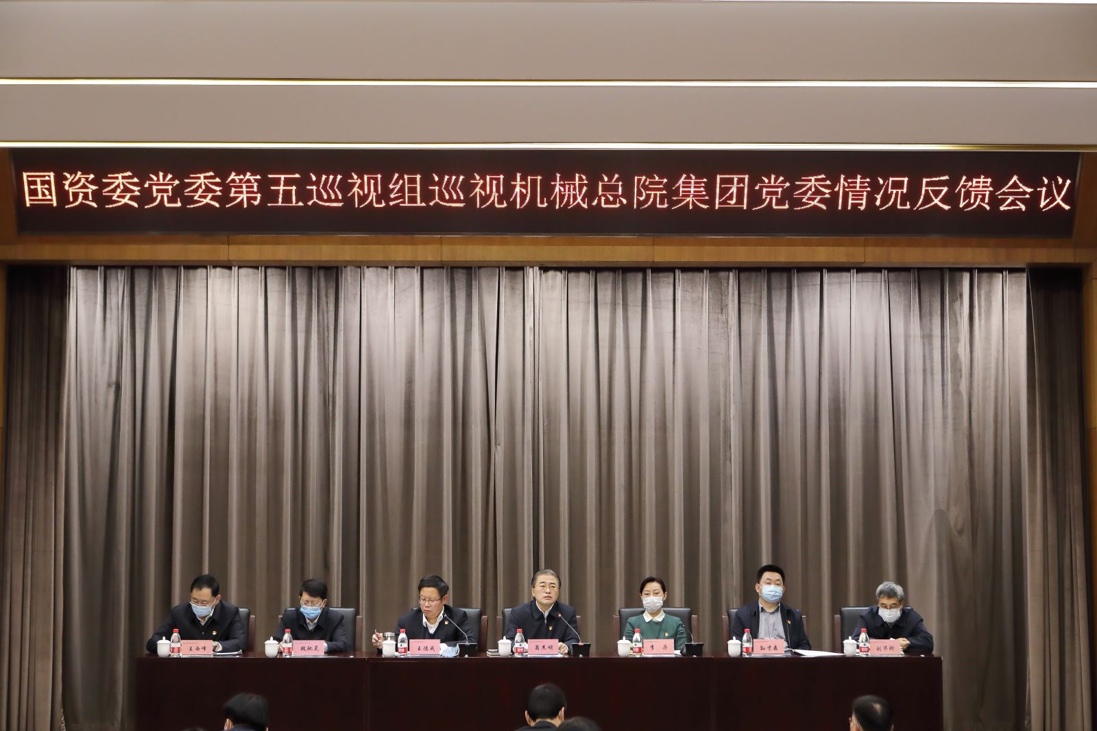 中央紀(jì)委國(guó)家監(jiān)委駐國(guó)資委紀(jì)檢監(jiān)察組、國(guó)資委企業(yè)領(lǐng)導(dǎo)人員管理二局、國(guó)資委黨委巡視工作辦公室負(fù)責(zé)同志,國(guó)資委黨委第五巡視組副組長(zhǎng)及有關(guān)同志,機(jī)械總院集團(tuán)領(lǐng)導(dǎo)班子成員出席會(huì)議;近三年退出領(lǐng)導(dǎo)班子的人員、總部各部門負(fù)責(zé)人、在京直管二級(jí)公司黨政主要負(fù)責(zé)人,以及職工代表在主會(huì)場(chǎng)參加會(huì)議,京外各企業(yè)領(lǐng)導(dǎo)班子成員在視頻分會(huì)場(chǎng)參加會(huì)議。