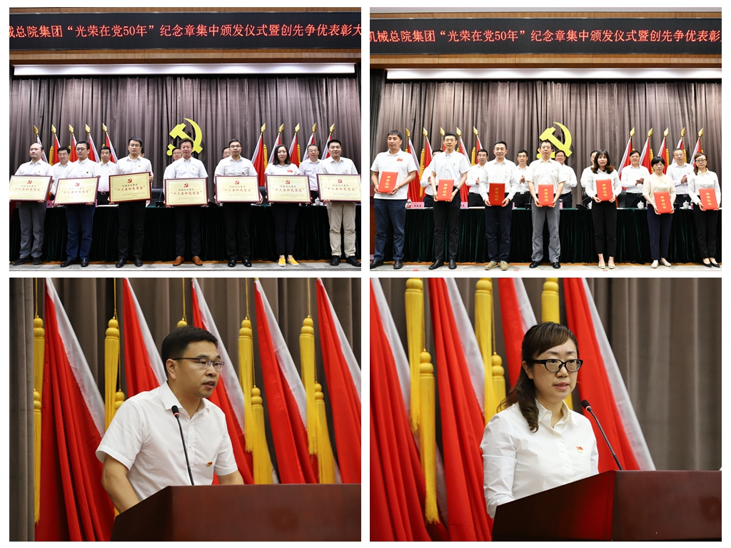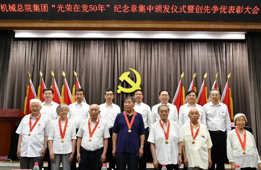 6月29日,機械總院集團在京召開“光榮在黨50年”紀念章集中頒發(fā)儀式暨創(chuàng)先爭優(yōu)表彰大會,深入學習貫徹習近平總書記重要講話和指示批示精神,慶祝中國共產黨成立100周年,表彰先進、樹立典型,激勵引導各級黨組織和廣大黨員、干部員工開拓進取、扎實工作、創(chuàng)先爭優(yōu),以高質量黨建引領集團高質量發(fā)展,助力集團“十四五”開好局、起好步。集團黨委書記、董事長王德成出席會議并講話,黨委副書記、總經理王西峰主持會議,黨委副書記李玉鑫宣讀表彰決定,黨史學習教育中央企業(yè)第八指導組一行出席會議。
