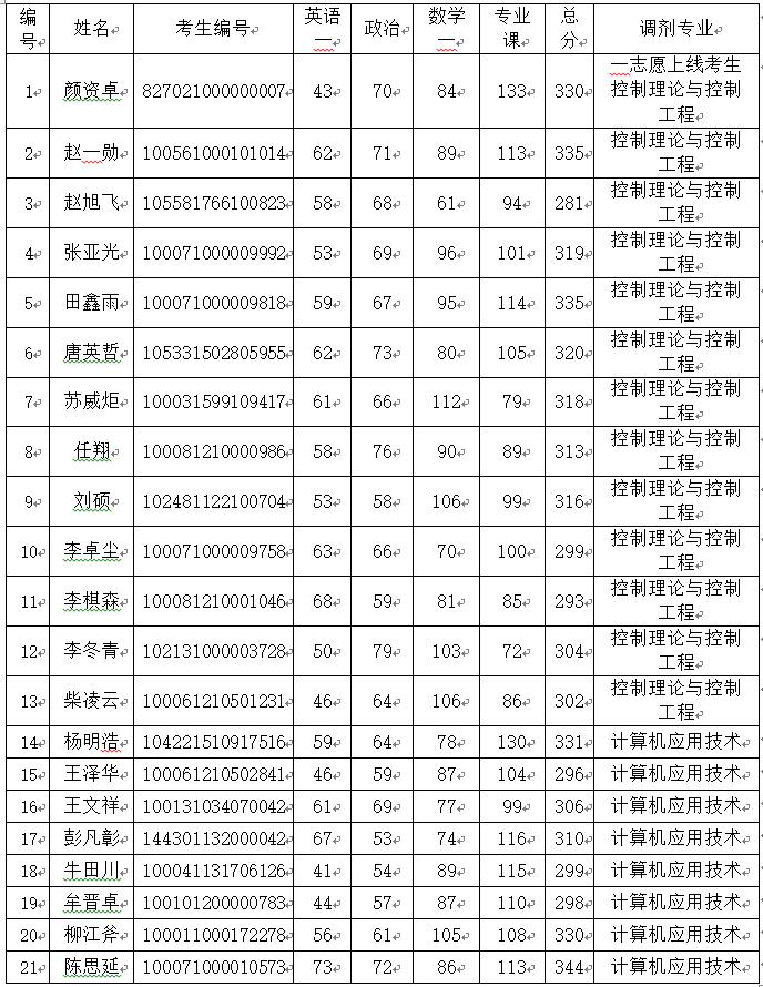 根據“北京機械工業(yè)自動化研究所2021年碩士研究生招生復試工作辦法”,現將北京機械工業(yè)自動化研究所2021年度碩士研究生入學考試復試名單公布如下: