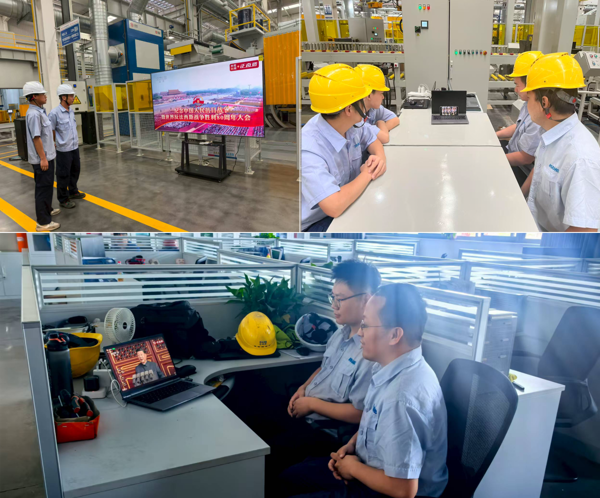 智能裝配事業(yè)部職工在項(xiàng)目現(xiàn)場收看大會(huì)直播