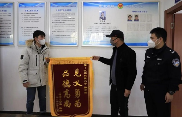 25歲的陳宇航目前在江蘇長江智能制造研究院有限責(zé)任公司實(shí)習(xí),是江蘇科技大學(xué)的研二學(xué)生。12月20日晚,陳宇航夜跑至五星橋時(shí),突然聽到有一個(gè)微弱的女聲在喊救命。他發(fā)現(xiàn)有一個(gè)人仰面躺在河里,已經(jīng)嗆水,隨時(shí)有下沉的可能?!安荒艿攘?,必須救人?!眻?bào)警后,陳宇航?jīng)]有一絲猶豫,在逼近0度的寒冬里,把衣服脫得只剩下一條褲衩,從3米左右的駁岸上跳進(jìn)了冰冷刺骨的河水中。經(jīng)過一番努力,陳宇航在水中艱難的帶著女子游到岸邊等待救援。很快,110和119先后趕到現(xiàn)場,落水女子成功獲救。12月22日下午,落水女子的哥哥向陳宇航送上“見義勇為 品德高尚”的錦旗。